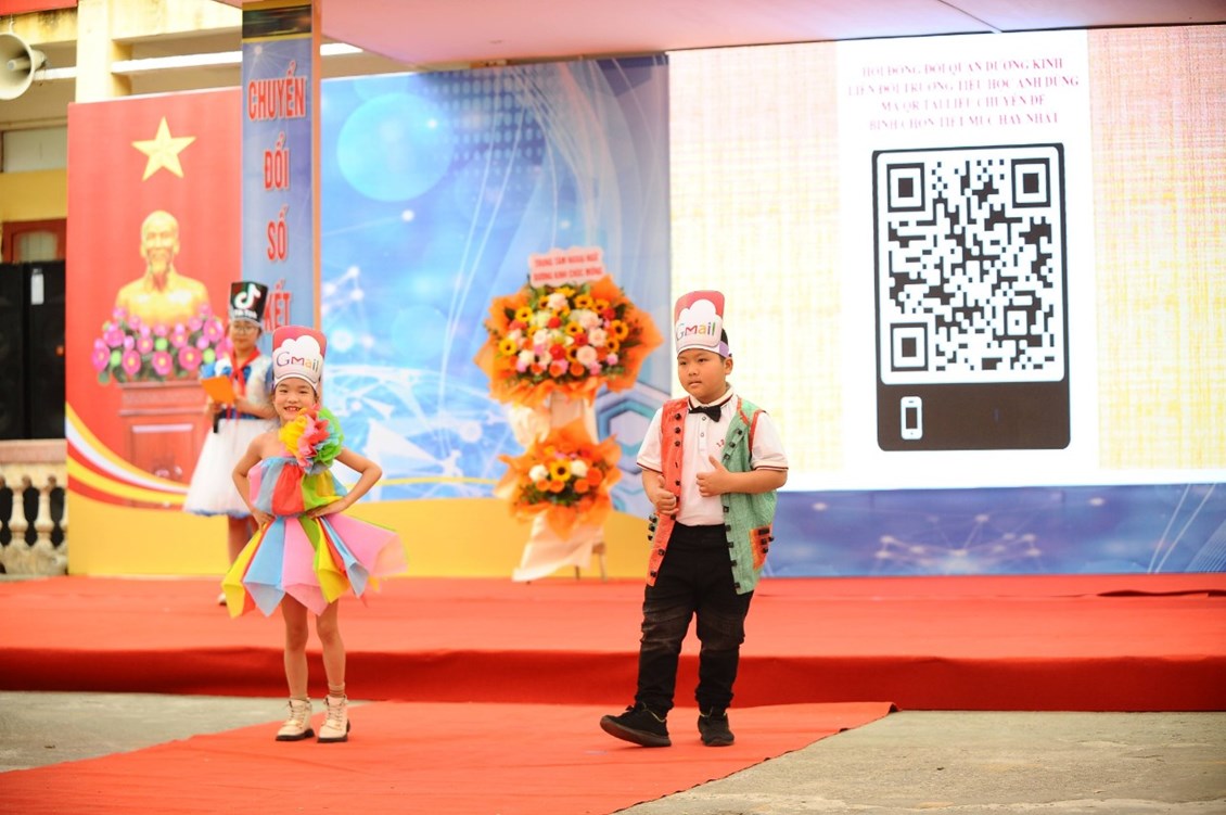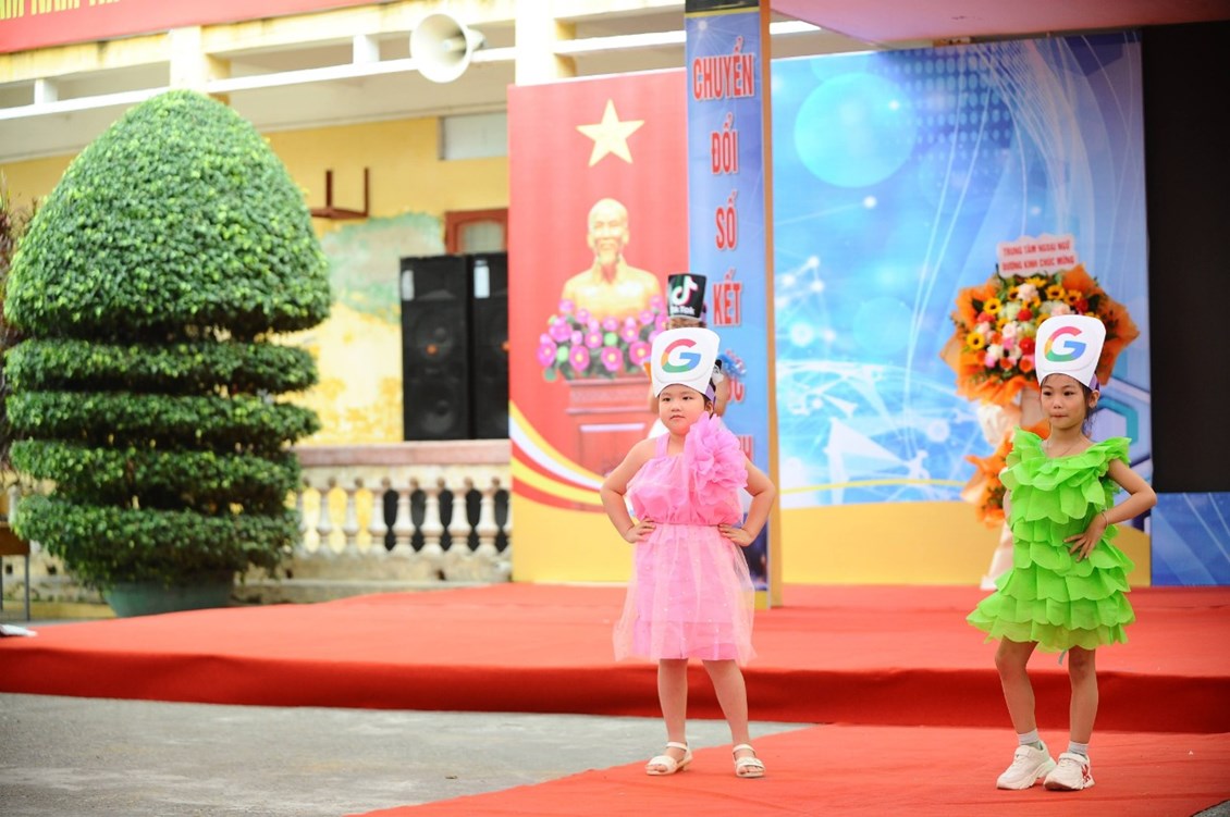 🎊 Phần 4: Trình diễn thời trang công nghệ 4.0 với bộ sưu tập trang phục mô phỏng máy tính, điện thoại thông minh, các ứng dụng đang được sử dụng rộng rãi trên toàn cầu như: Google, Gmail, Facebook, Zalo, Microsoft teams, Zoom Meeting, Shopee, Lazada.