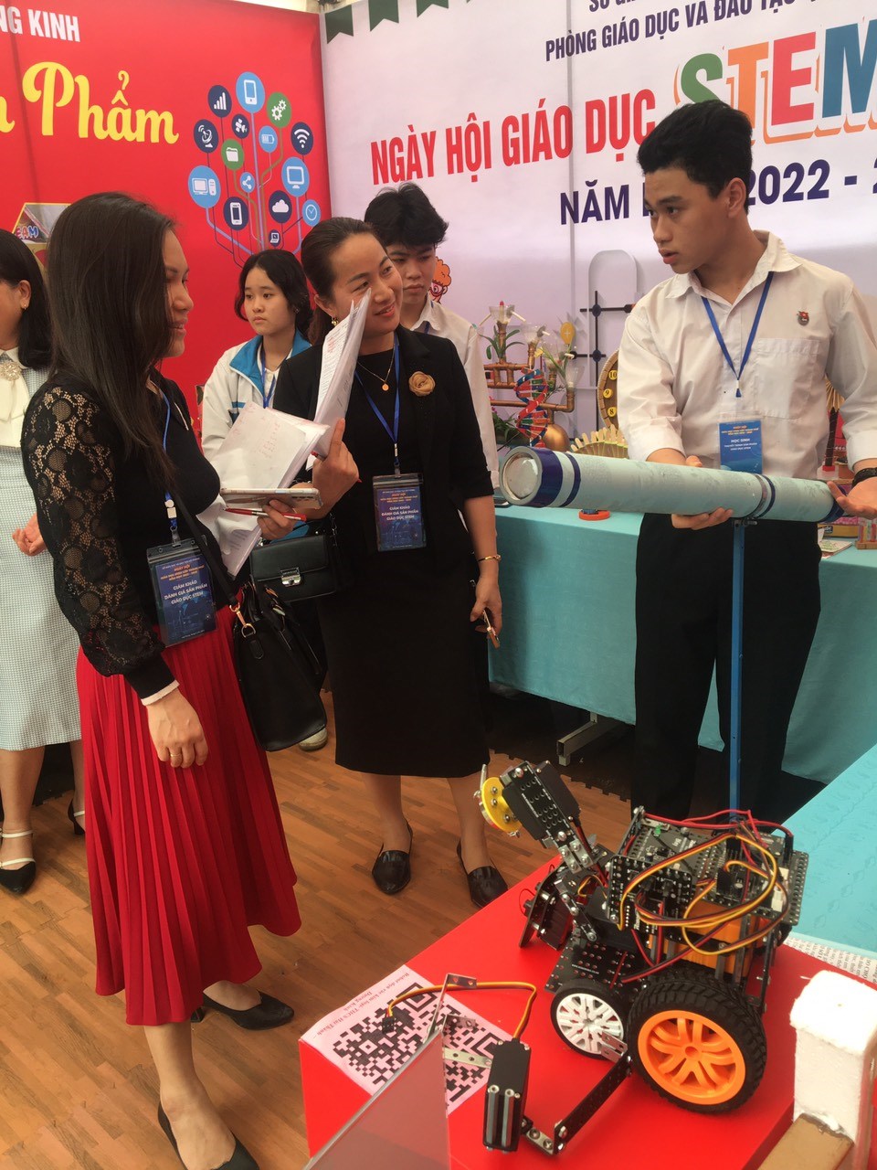 Tham gia ngày hội năm nay, gian trưng bày của đơn vị Phòng giáo dục – đào tạo mang tới các sản phẩm STEM được chọn lựa kĩ lưỡng từ hàng trăm sản phẩm STEM đến từ các trường trong Quận. Đó là các sản phẩm tuân thủ -đáp ứng các tiêu chí khắt khe về kĩ thuật, về các nôi dung kiến thức liên môn được vận dụng, giải quyết được những yêu cầu cấp thiết của thực tế giảng dạy và cuộc sống, đồng thời thể hiện rõ xu hướng không ngừng cải tiến, đổi mới.